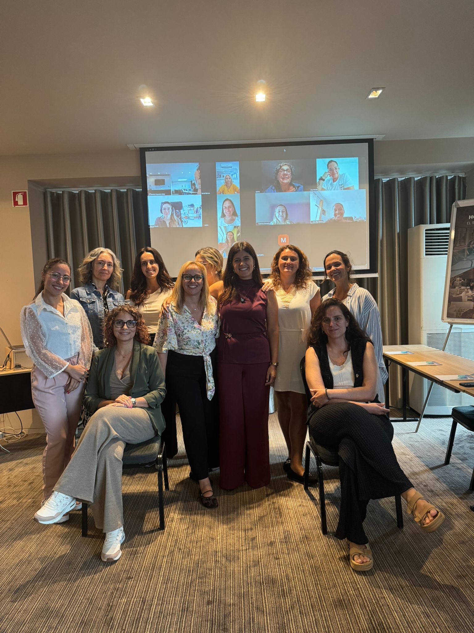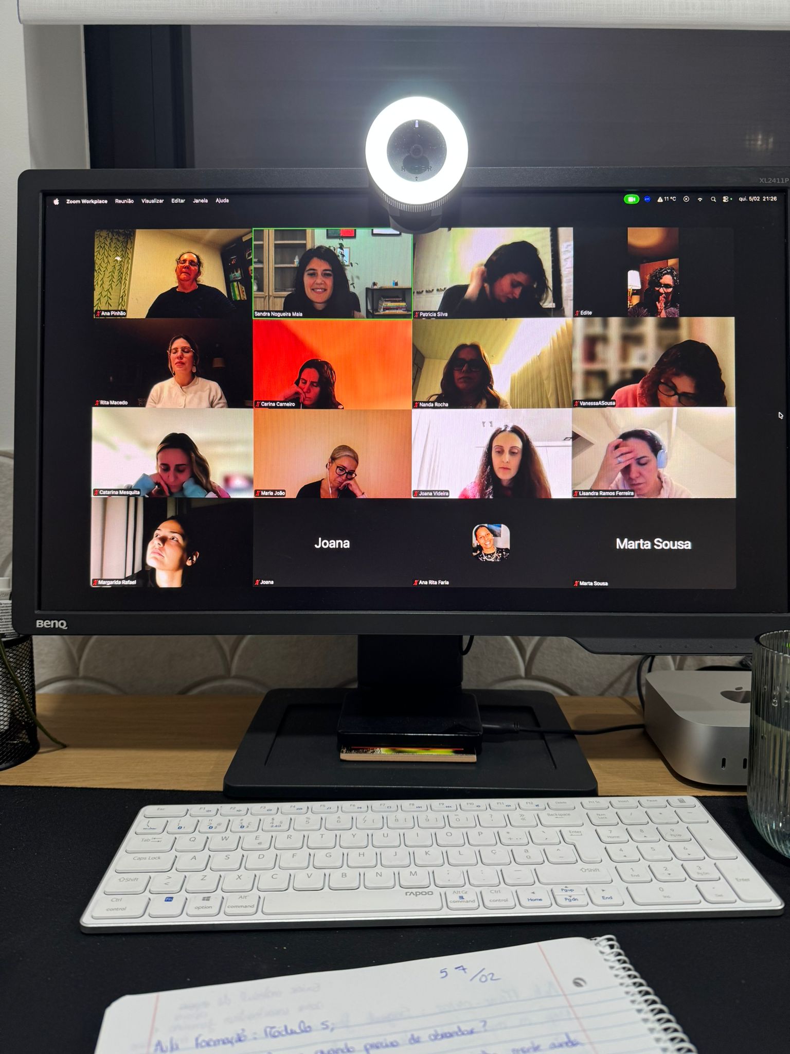 A formação decorre em formato híbrido, combina encontros online e presenciais ao longo do ano. As sessões online realizam-se via Zoom e os encontros presenciais acontecem em momentos específicos do percurso formativo.